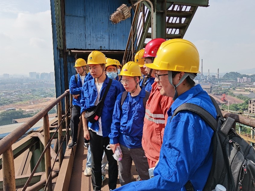 高炉炼铁车间内,从工艺流程、工程控制、显示界面进行了系统的学习,并亲自前往高炉内,感受火焰灼烧的温度。
