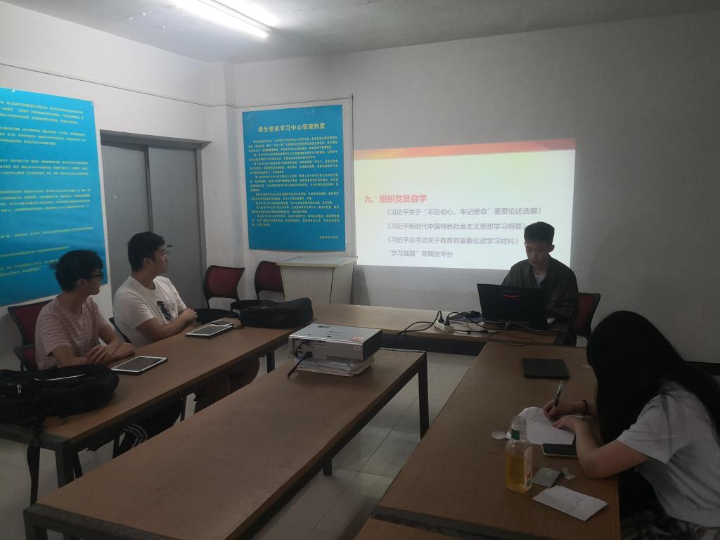 恰逢新中国成立七十周年伟大历史节点,党支部书记白春辉同志带领支部成员齐唱《我和我的祖国》为祖国母亲献礼,并重温入党誓词,坚定信念和初心。紧接着,党支部成员对照党章党规,开展批评与自我批评,以获得思想上的进步。白春辉同志在磨炼吃苦耐劳品质和倾听群众意见两个方面做出了自我批评,林昕雨同志指出自己在理论学习、宣传党的思想方面存在不足,郭琳炜同志也在学习先进思想方面进行了自我批评。随后,党支部成员共同学习《91探花