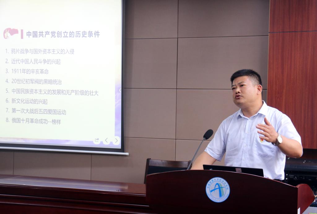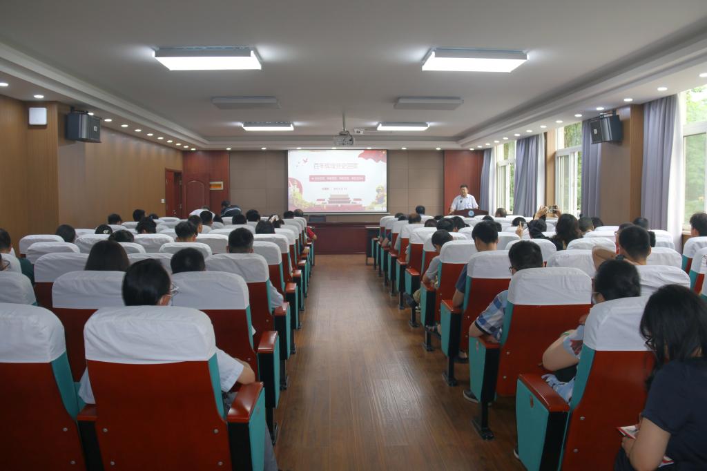 2021年6月10日,学院党委副书记何建新为全体教工党员讲授题为“百年辉煌 党史回顾”专题党课,带领全体党员重温了中国共产党的百年建党史。