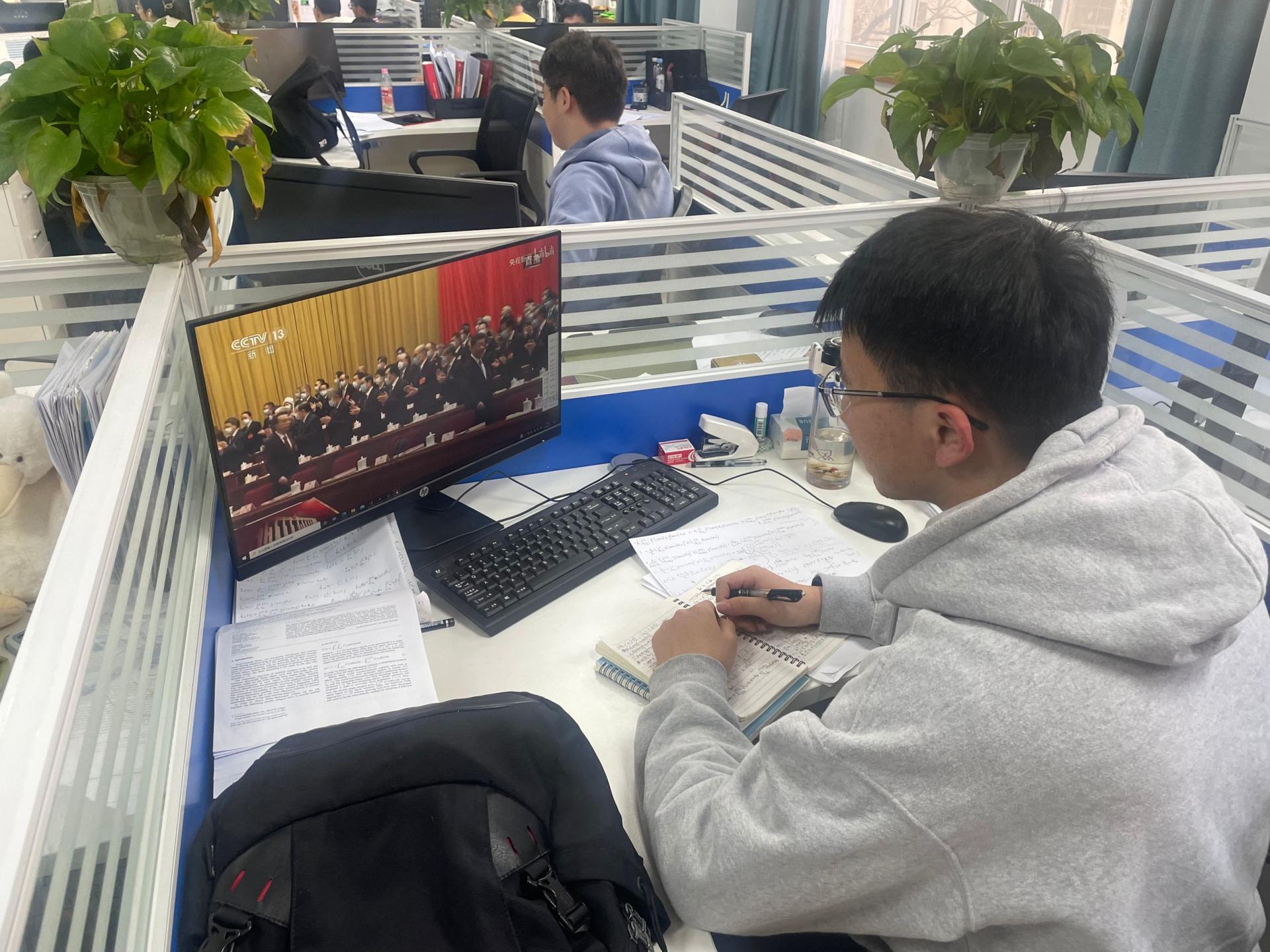 由于疫情的影响,我们支部组织党员们在腾讯会议集体观看了“两会”的直播,观看学习两会报告后,我感触颇多、受益匪浅。作为一名学生党员,我们需要积极响应组织号召,努力为科研做出贡献,脚踏实地学习,敢于迎难而上,为实现目标而努力奋斗。作为班长,我将组织开展好凝聚人心、弘扬正能量的文体活动,努力展示研究生的风采。两会不仅充分展示了中华民族腾飞的浩然气势,而且为祖国增添无尽的腾飞力量,使中国向更高更远的高空奋力飞翔。