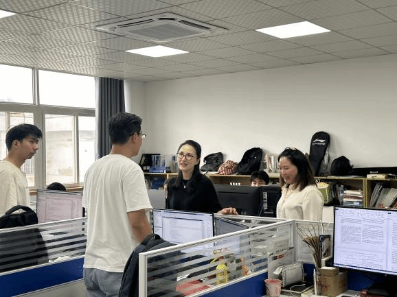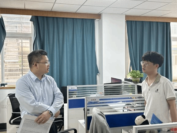 党委书记朱荆萨、副院长刘振焘走进实验室,与同学们亲切交流,现场气氛温馨融洽。老师们细心询问同学们的学业规划、科研方向,耐心倾听大家的建议与需求,并表示学院作为同学们坚实的后盾,将主动回应实际需求,整合现有资源完善大家的科研、生活条件。