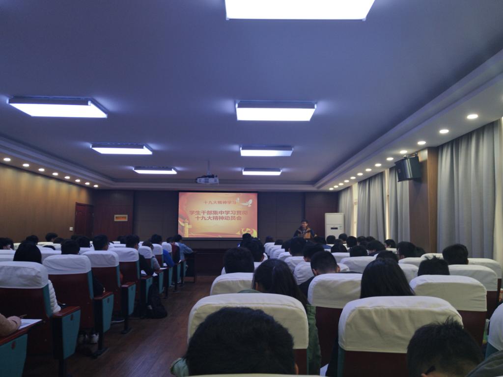 时代是思想之母,实践是理论之源。十九大看似遥远,但实际上与每位同学都息息相关。认真学习十九大会议内容与精神,不仅有利于提升学生干部自身素养,也有利于打造学院更好的精神内涵。学生干部要不断加强自身理论学习,以实际行动贯彻落实十九大会议精神,做事不忘初心,牢记使命。