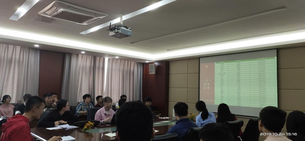 会议最后,由学工组兼职辅导员李敏老师宣读名单,帮扶对象和被帮扶对象相互认识。何书记强调,双方应主动联系、多多交流,争取早日提高学习成绩,圆满完成学业。
