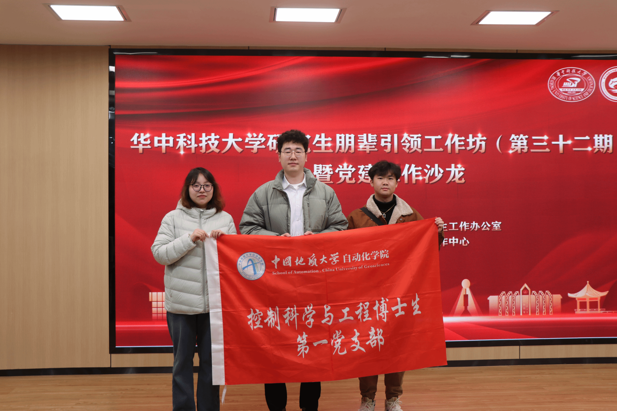 2024年12月4日晚,华中科技大学研究生朋辈引领工作坊(第三十二期)暨党建工作沙龙于紫菘学生活动中心二楼学术报告厅顺利举行。博一党支部受邀参加会议并与华中科技大学四个学生支部进行了分享交流。中国地质大学(武汉)研究生院研究生思想政治工作办公室主任游萌、朱密华老师及学生代表,华中科技大学研究生培养单位的70余名研究生骨干参与本次党建工作沙龙。