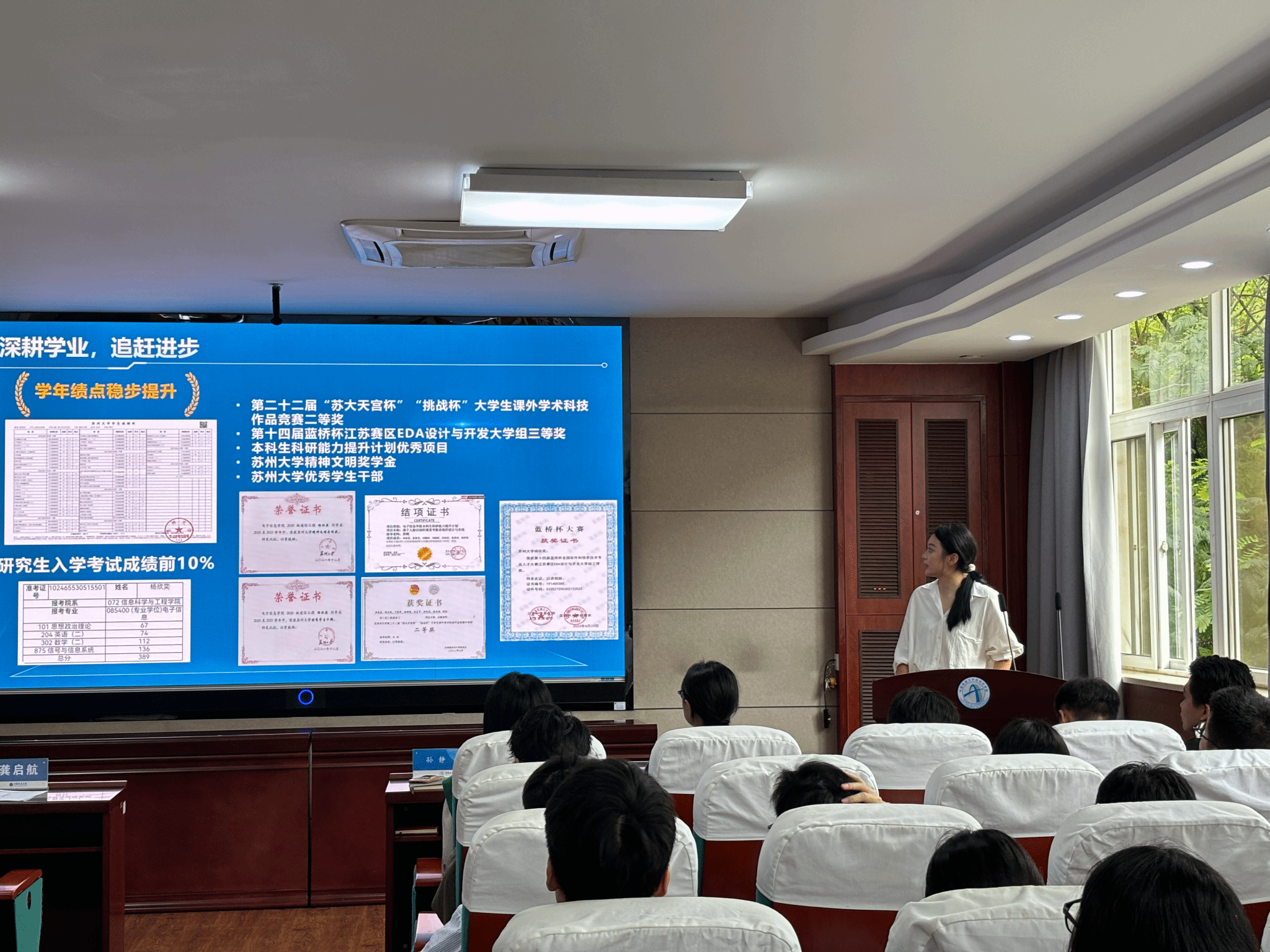 2024届研究生会工作报告》。他从学术交流、文体活动和就业服务等方面全面总结了一年来的工作亮点,同时也分析了工作中的不足之处,并提出了切实可行的改进建议。