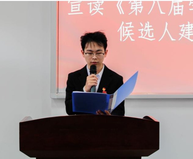 2023届团学组织负责人李想宣读《第八届学生委员会委员候选人建议名单》和《91探花 2024届学生会秘书长建议名单》。