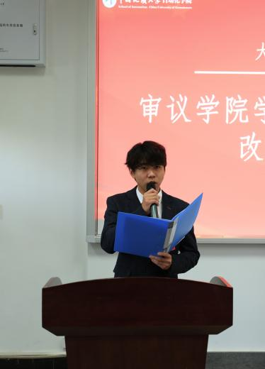校学生会主席高尚宣读了批复,他传达了校学生会对学院学生会工作的肯定及同意学院开展代表大会的决议。