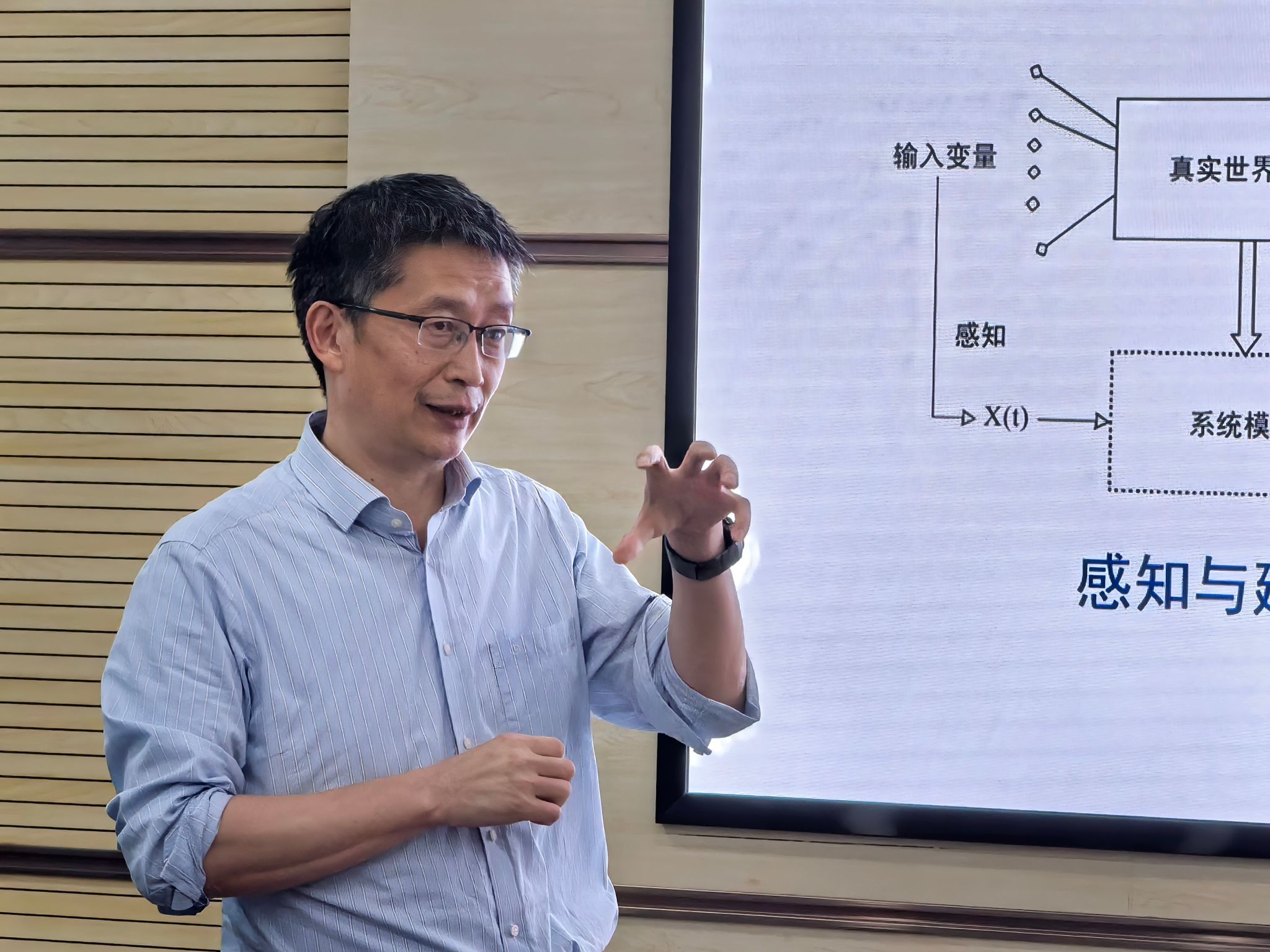 朱荆萨书记介绍了学院此次到访生环全重的主要目的,衷心感谢谢树成院士提供的宝贵交流机会,希望能通过此次交流搭建起学院和生环全重的合作平台。曹卫华院长作了《自动化与AI发展简介及在地质领域应用》的报告,深入浅出地介绍了自动化与人工智能的发展脉络,并着重阐述了在地质领域的创新应用。胡文凯教授作了《复杂工业系统数据挖掘与智能监控研究》的报告,详细讲解了各类数据挖掘的关键技术、新方法以及智能监控的实现路径等内容。报告结束,与会老师和同学还沉浸在这场学术大餐中,意犹未尽。