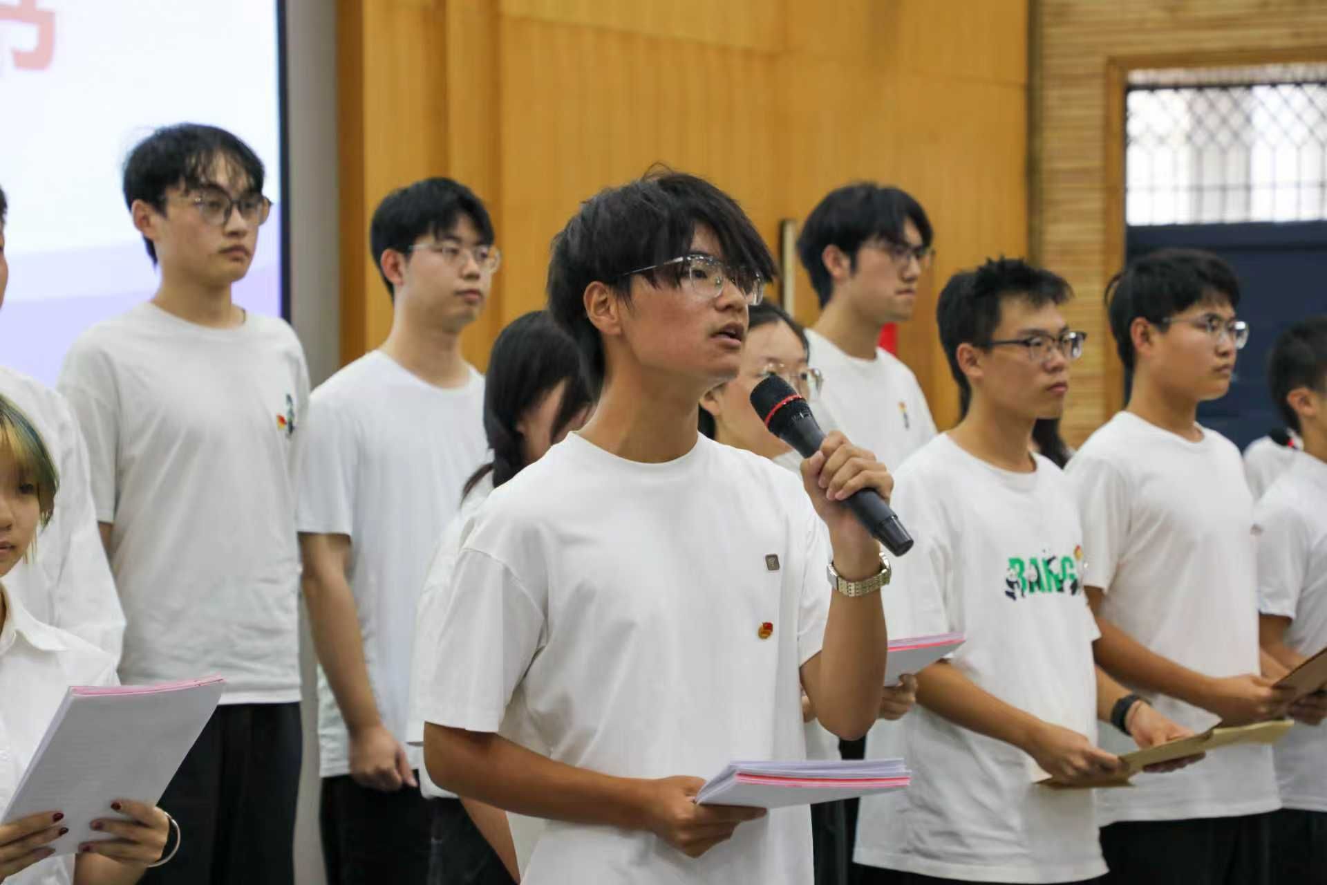 高年级学生代表、学生会主席团成员田冰玥同学发言。她分享了智能车自动行驶如何点燃好奇心的故事,希望新同学们永葆好奇之心,敢于追问“为什么”,勇于探索“不可能”,珍惜每一节课、每一次实验,脚踏实地积累知识,积极培养自主学习的能力。