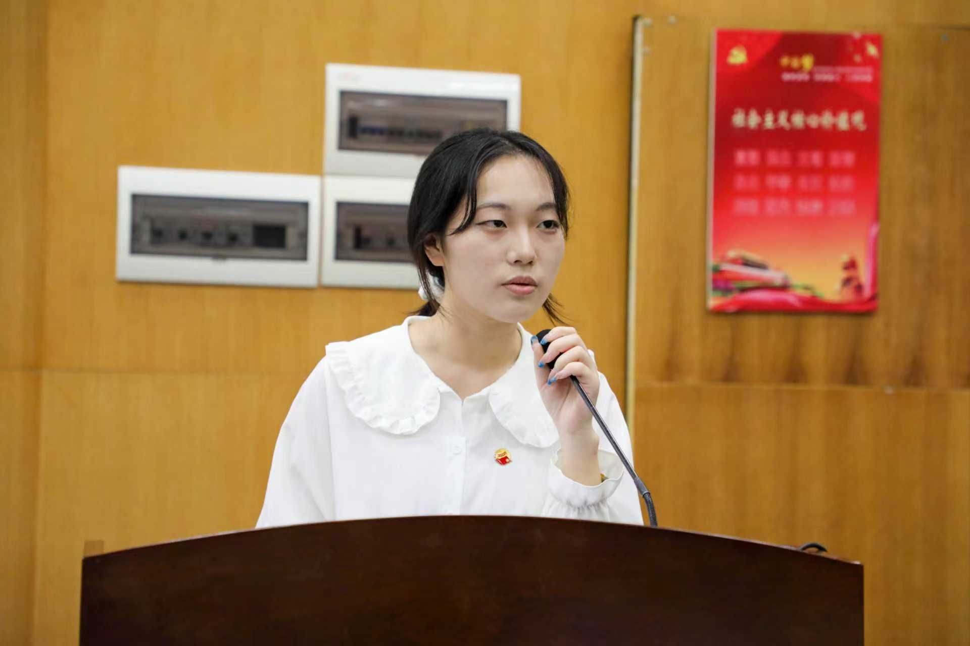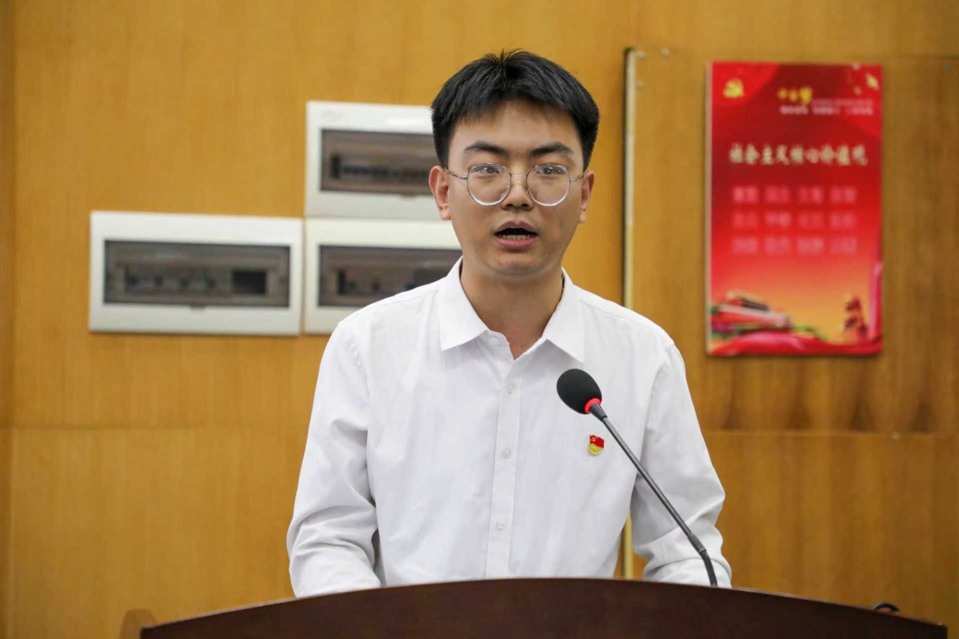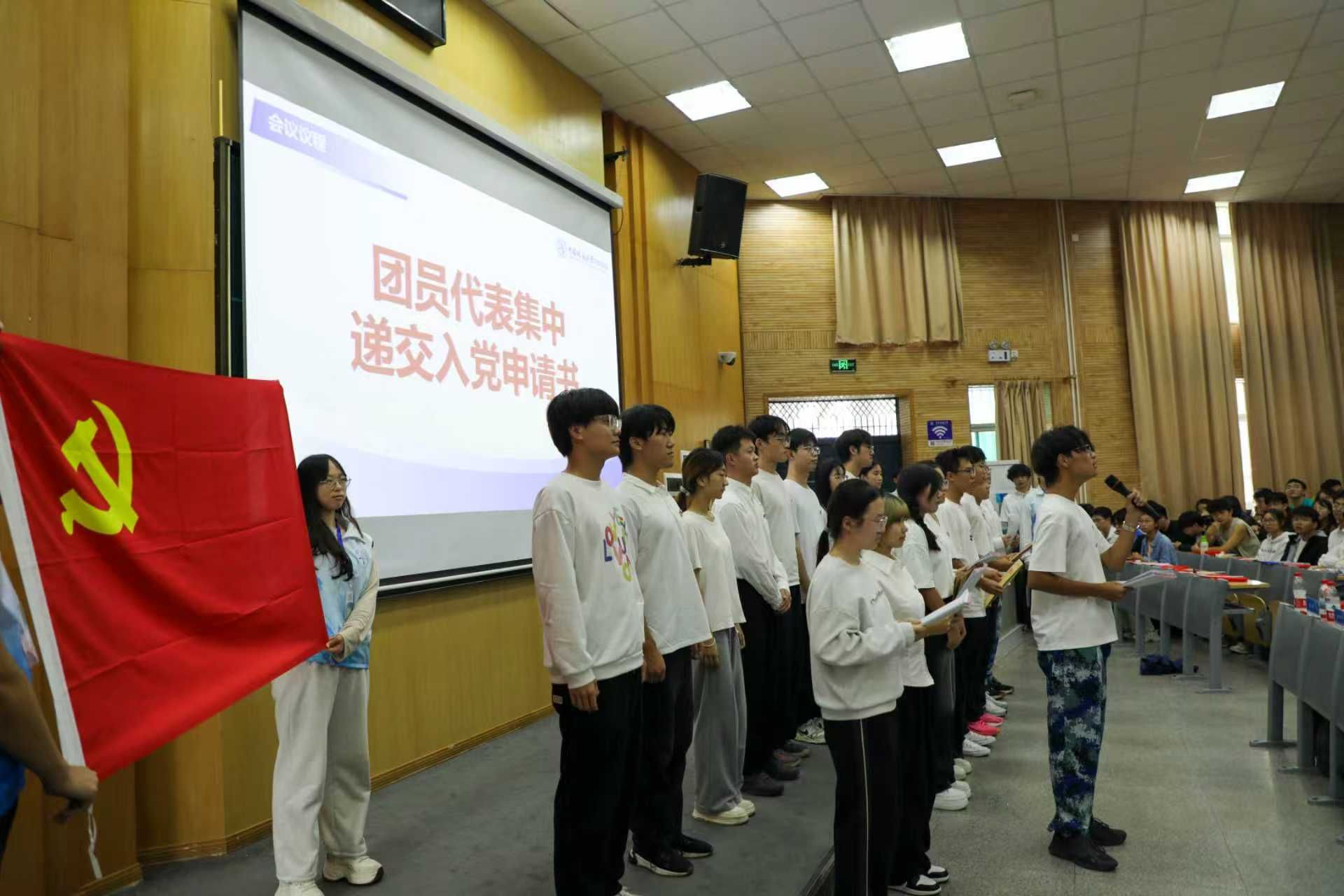 “我们将积极向组织靠拢,努力成长为可堪大任的时代新人……”9名团员代表手握97份入党申请书,郑重地向党组织集中递交,这一份份沉甸甸的申请书,是青春向党的铿锵誓言,他们眼神坚定,姿态昂扬,用实际行动表达了坚定不移听党话、跟党走,为共产主义事业奋斗终身的坚定信念与决心。在团员代表陈光耀同学铿锵有力的话语中,理想与信仰交织,责任与使命共融,展现了新时代青年积极向党组织靠拢、矢志将青春奋斗融入党和人民事业的磅礴力量,将现场气氛推向高潮。
