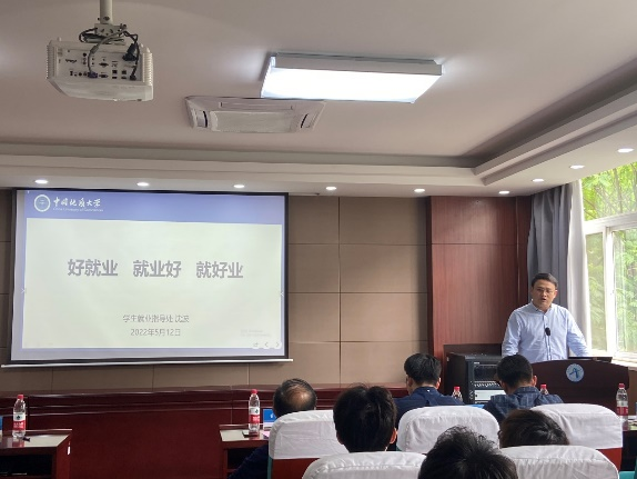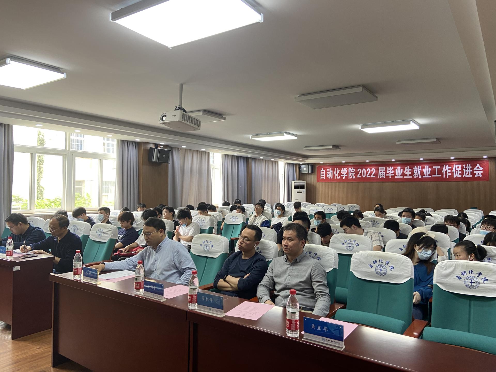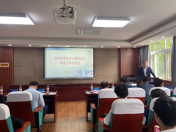 在信息楼310报告厅召开2022届毕业生就业工作促进会,学生就业指导处副处长沈波、学院党委书记董浩斌、学院党委副书记王向东、副院长宗小峰、副院长陈略峰、各系主任、毕业班班主任、全体辅导员和2022届毕业生代表参加会议,会议由王向东主持。