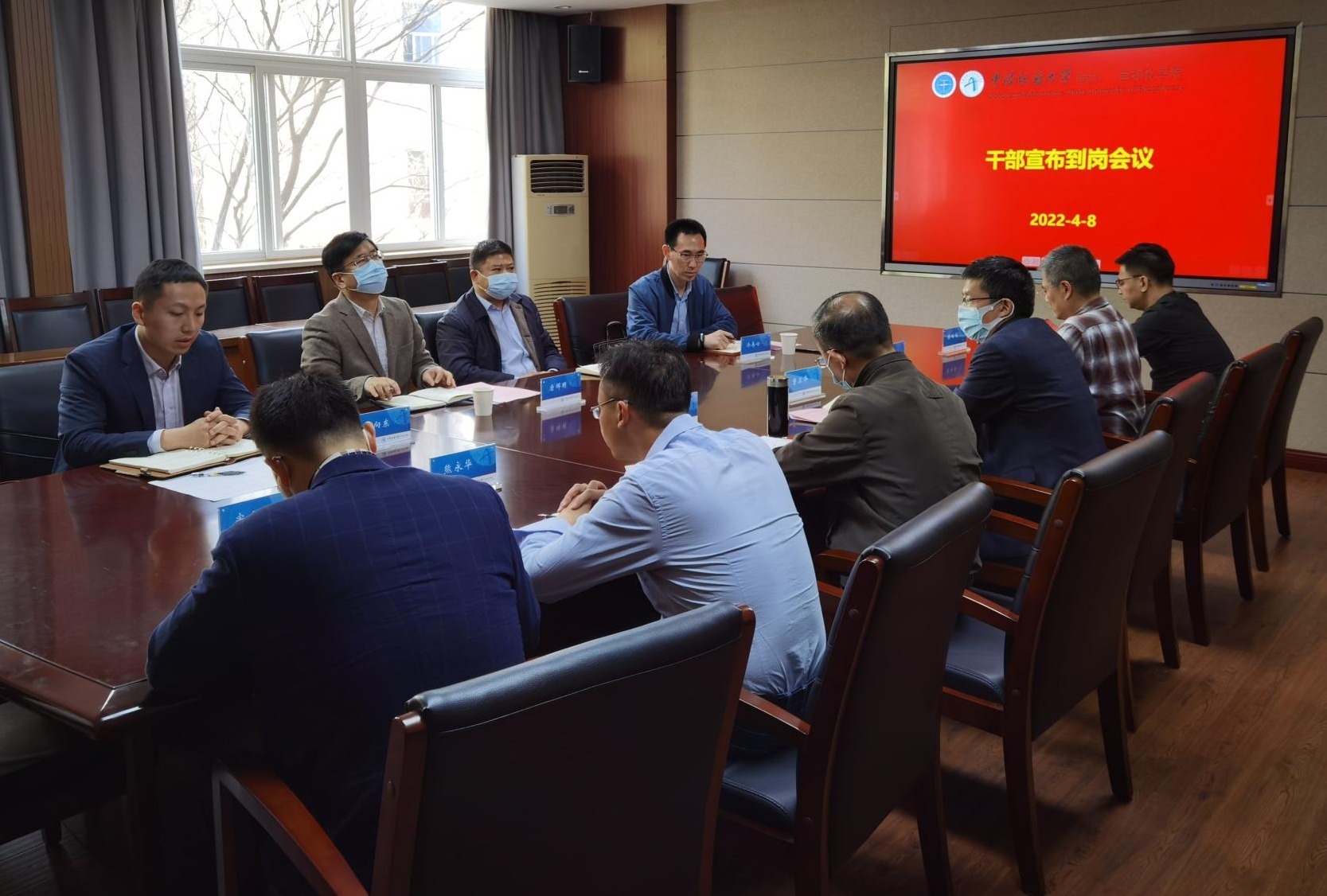 信息楼316会议室召开干部宣布到岗会,校党委副书记唐辉明、校党委组织部副部长冷再心、学院领导班子成员、三级单位负责人、教师代表参会。冷再心副部长主持会议。