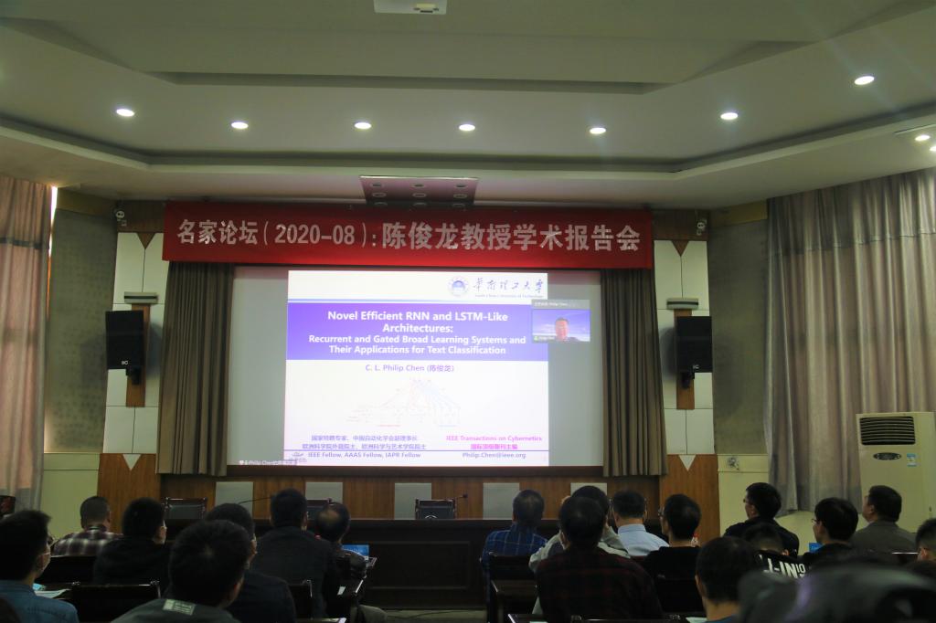 开幕式后,华南理工大学陈俊龙教授在线上为师生作了题为《A Novel Efficient RNN and LSTM-Like Architecture: Recurrent and Gated Broad Learning Systems and Their Applications》的学术报告,加拿大康考迪亚大学苏春翌教授作了题为《Robust Control of Underactuated Mechanical Systems》的学术报告。