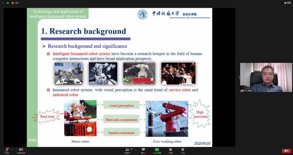 陈鑫教授作了题为《Technology and application of intelligent humanoid robot system》的大会报告。