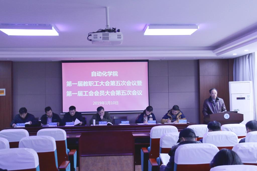 成立以来的成绩给予充分肯定。院长吴敏作了题为《牢记使命,脚踏实地,为建设自动化一流本科而努力奋斗》的工作报告。他对学院2018年的工作进行了回顾与肯定,对存在的问题进行了深刻的反思,同时对2019年的主要工作做了部署。随后,院工会主席何建新同志作了题为《凝心聚力,再创学院工会工作新局面 》的工会工作报告;院办主任李儒胜作了学院财务工作报告。