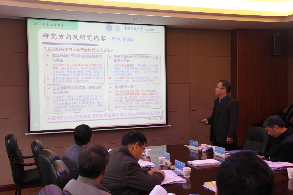 会议上,重点实验室主任吴敏教授就重点实验室2017年度工作做了报告,曹卫华教授、葛健副教授、刘振焘博士分别就所在团队的科研进展做了报告。随后,学术委员会就重点实验的工作进行了评议。学术委员会认为实验室在2017年度科学研究成果显著,实验室建设稳步推进,在学术交流和人才培养国际化方面特色突出,实验室运行管理规范。同时,学术委员会对如何进一步凝练学科发展方向,融汇地学发展特色,形成高水平科技成果,加强科技成果转化与应用等工作提出了建议。