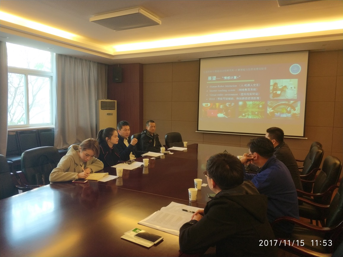 计算智能与信息处理实验室,实验室同学演示了面部表情识别、脑电信号分析等情感计算的最新研究成果,随后就情感计算与情感机器人的研究热点展开了讨论。