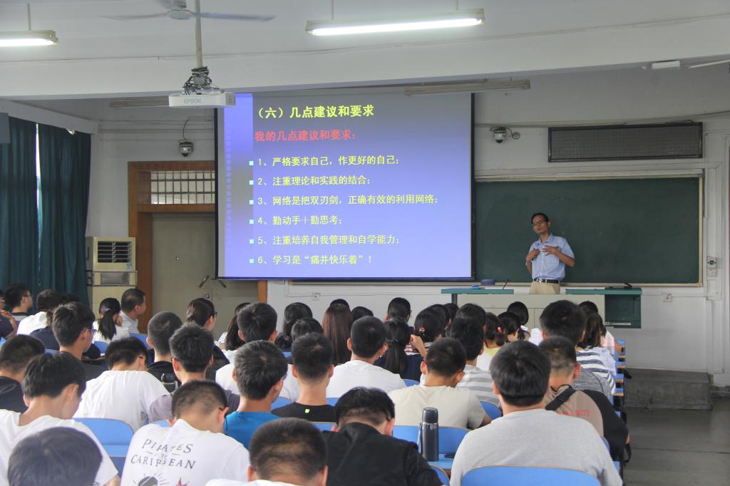 新生带来《读书与大学生素质教育》主题讲座讲座,讲解深入浅出,赢得同学们阵阵掌声。9月8日由学工组、教务科老师们向同学们讲解《学生手册》,重点强调了学习制度、学风建设、奖励资助及考核评优制度等,下午各班级组织召开了新学期第一次班会暨新生班主任见面。