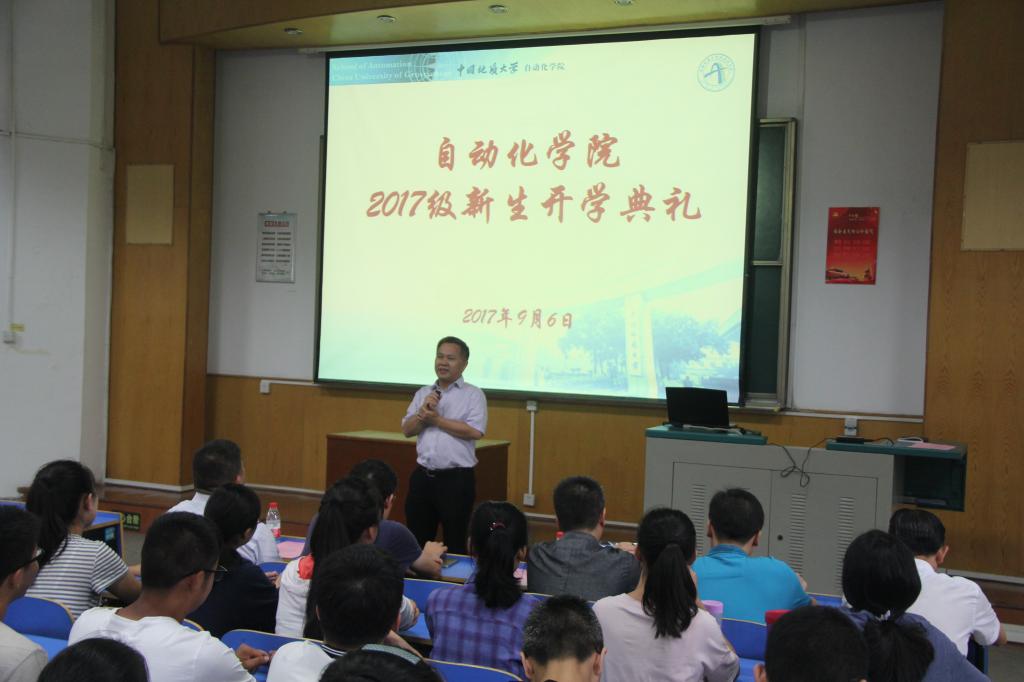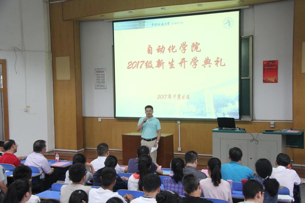 (通讯员 任艺)一年一度秋风劲,八方学子来相聚。9月6日上午,91探花 2017级新生开学典礼在教一楼二阶隆重举行。院长吴敏教授,院党委书记董浩斌教授,副院长曹卫华、金星、王广君、陈鑫教授,自动化系熊永华、刘峰、宗小峰教授,测控系李志华副教授、实验中心副主任刘小波老师以及教师代表等出席典礼。91探花 2017级全体本科生、研究生参加了开学典礼。典礼由院党委副书记何建新主持。