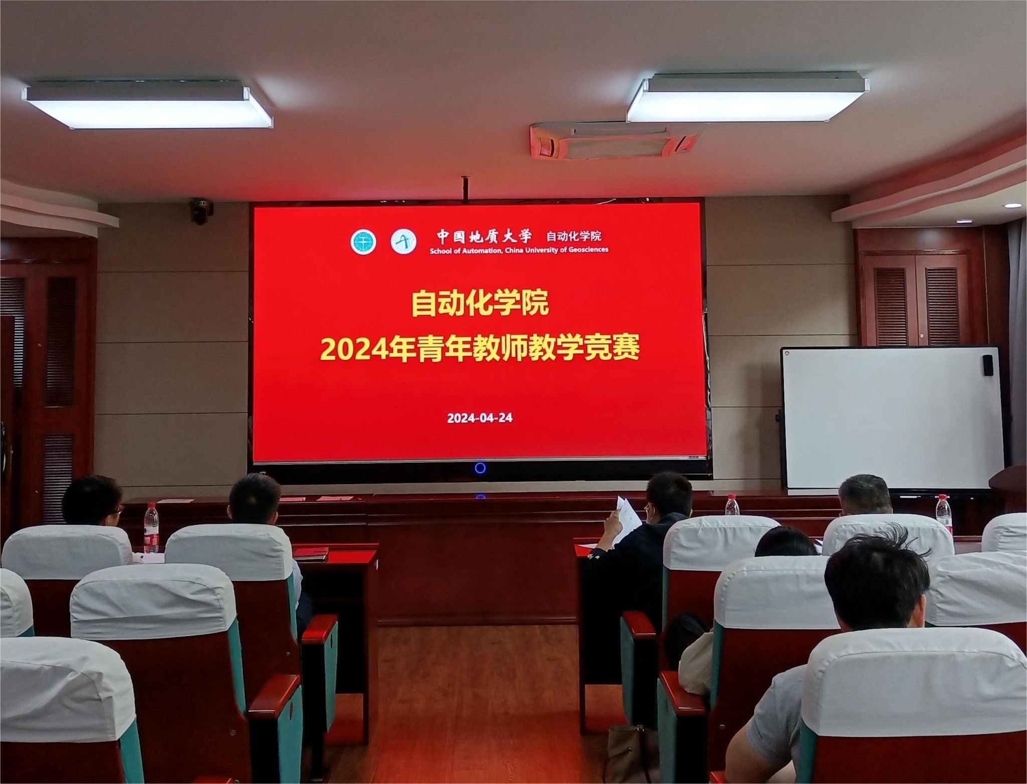 在信息楼310会议室举办了青年教师教学竞赛。翟超、丁敏、王亚午、张盼、朱继轩五位青年教师参加比赛。