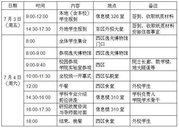 3.就餐:学院安排7月4日午餐和晚餐,其他餐饮自行解决。