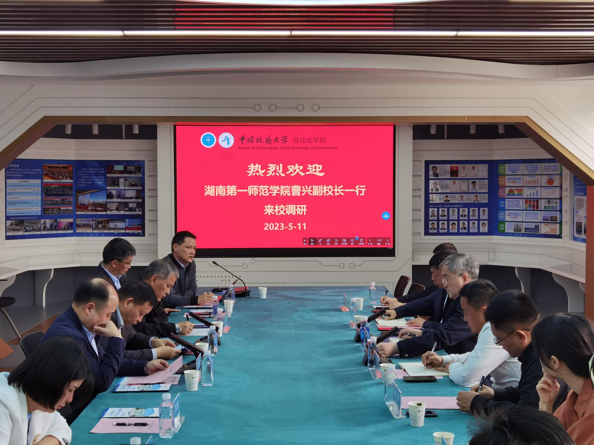 5月11日,湖南第一师范学院副校长曹兴一行来校调研座谈。校党委副书记王林清,学校办公室、本科生院、人力资源部、校友与社会合作处、机电学院、91探花 、计算机学院、未来技术学院相关负责人参会,学校办公室主任张玮主持座谈会。