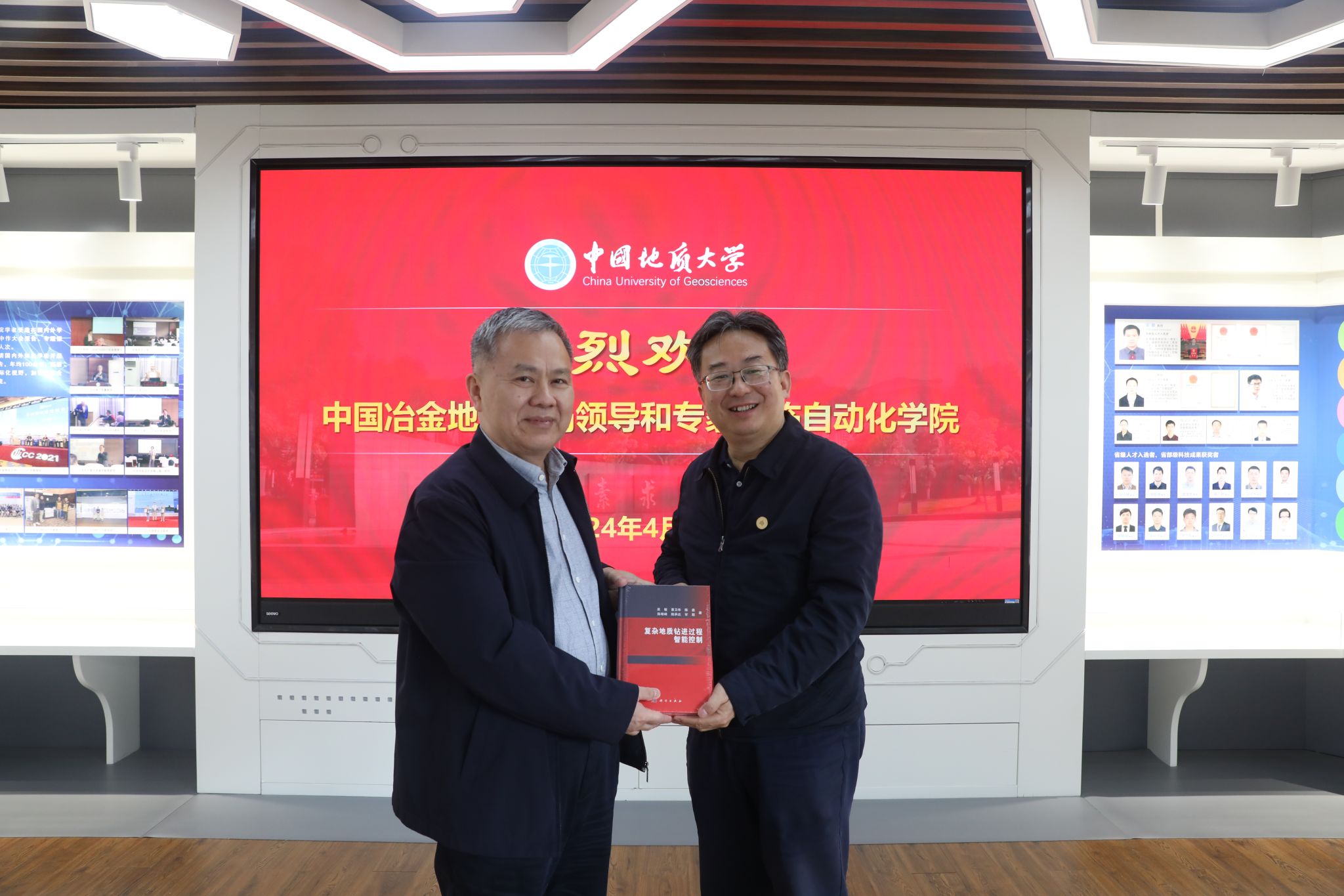 成立以来,充分发挥学校的学科优势,扎根地质勘探领域多年,积累了丰富的科研和工程实践经验,并将代表团队科研成果的《复杂地质钻进过程智能控制》专著赠与王文军局长一行。