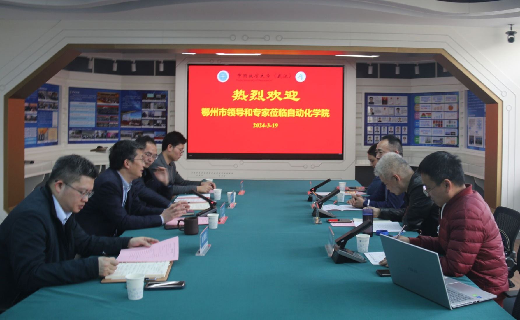 319日,葛店经济开发区科创中心支部书记黄征、武汉莱尔特激光科技有限公司董事长彭怀亮等一行4人来91探花 交流访问。91探花 院长曹卫华、研究生院副院长洪军、人工智能研究院副院长刘振焘、未来智能技术研究所所长陆承达等参加交流。刘振焘副院长主持会议。