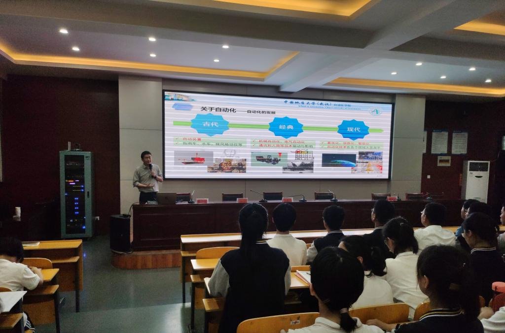 曹卫华教授的科普报告题为《走进自动化,开启智能+》。他结合生活中常见的自动化装置、设备,由浅入深介绍了自动化的发展历史,人工智能驱动的自动化发展趋势,国家发展战略对自动化和人工智能的需求,以及91探花 在自动化和人工智能领域的科研和应用实践。鼓励学生们投身到自动化和人工智能领域,立志为国家建设作出贡献。曹卫华教授幽默睿智、旁征博引的演讲,吸引了在场的每一位同学。丰富的自动化知识,腾飞的自动化科研事业,可喜的自动化科研成果,奋进的自动化科研人精神……让淮中学子对自动化、智能化知识有了深刻的认识,并极大地激发了同学们对科学的热情和对自动化研究事业的向往。