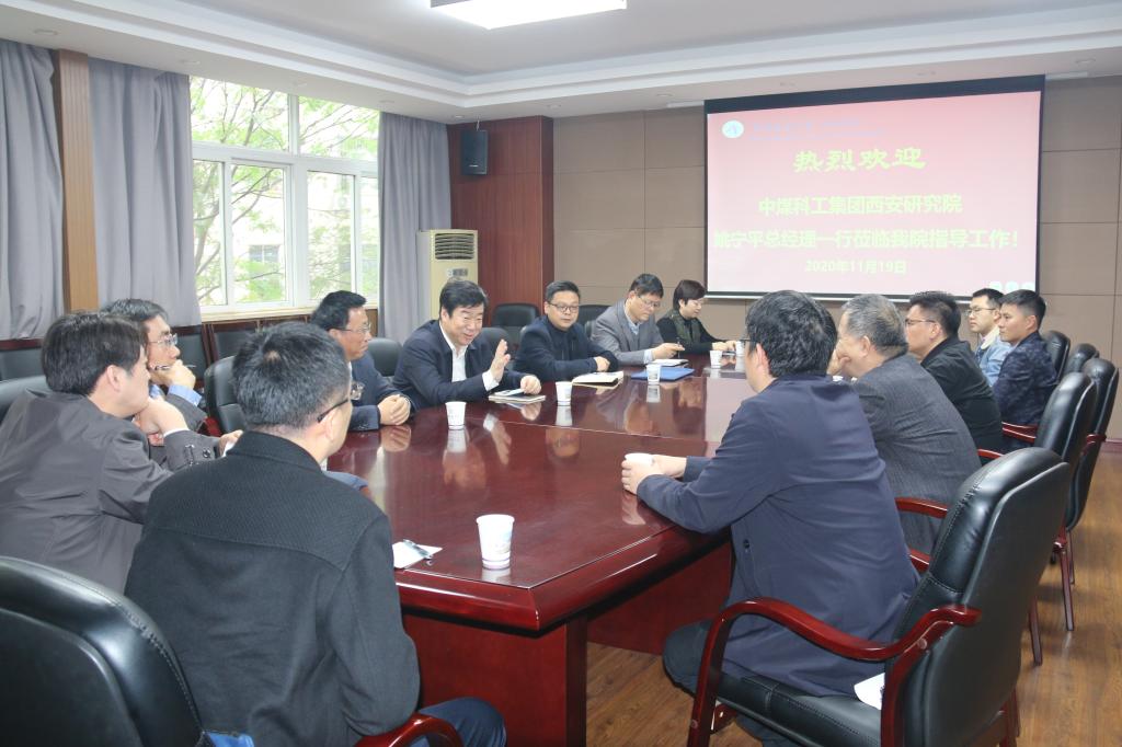 1119日,中煤科工集团西安研究院有限公司总经理姚宁平、副总经理刘程、首席科学家张群及相关部门负责人来91探花 调研。院长吴敏,常务副院长曹卫华以及相关部门负责人出席了调研活动。