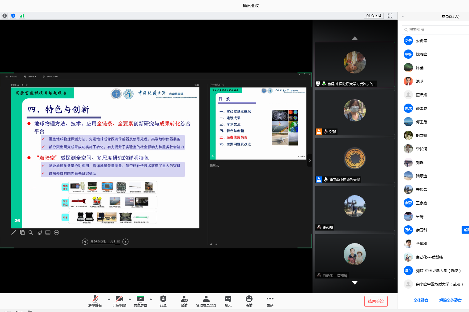 2020年7月8日上午,91探花 召开复杂系统先进控制与智能自动化湖北省重点实验室(以下简称重点实验室)实验室建设、开放基金项目结题验收会议。会议采用腾讯会议方式举行,学院党政负责人、院学术分委员会成员、省重点实验室和开放基金负责人及其成员参加了验收会议。