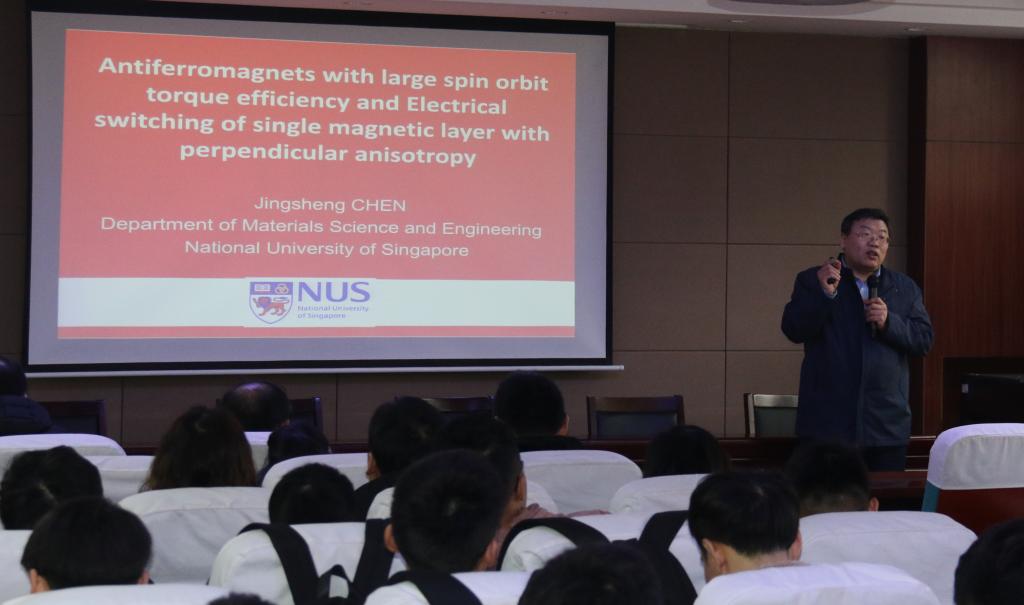 作了题为 《Antiferromagnets with large spin orbit torque efficiency and Electrical switching of single magnetic layer with perpendicular anisotropy》的学术报告。