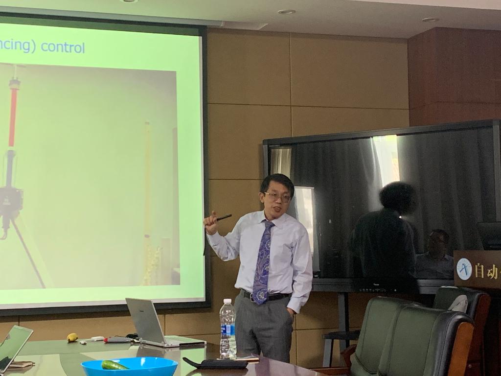 忻欣教授的报告题目为《Controllability and Observability of an n-Link Underactuated Planar Robot with Different Actuator-Sensor Configurations》。他介绍了欠驱动系统的概念,总结了欠驱动机械臂的研究现状,梳理了自己在欠驱动机械臂方面的研究进展。他以自己的实际研究为基础提出了理论问题,即什么结构的欠驱动机械臂是可控和可观的,并介绍了理论推导到得出结论过程。
