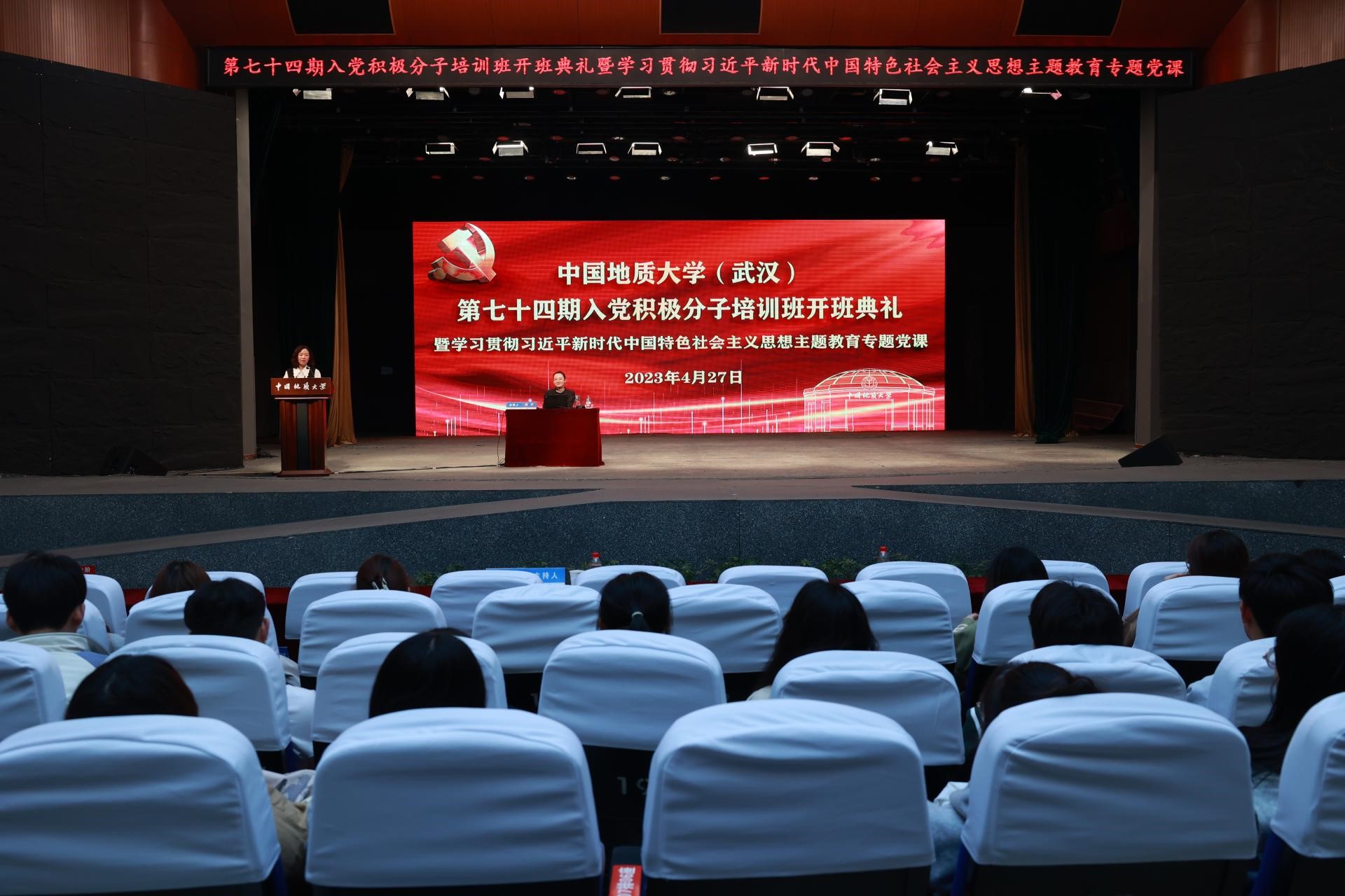 第七十四期入党积极分子培训班开班典礼暨学习贯彻习近平新时代中国特色社会主义思想主题教育专题党课在弘毅堂举行。