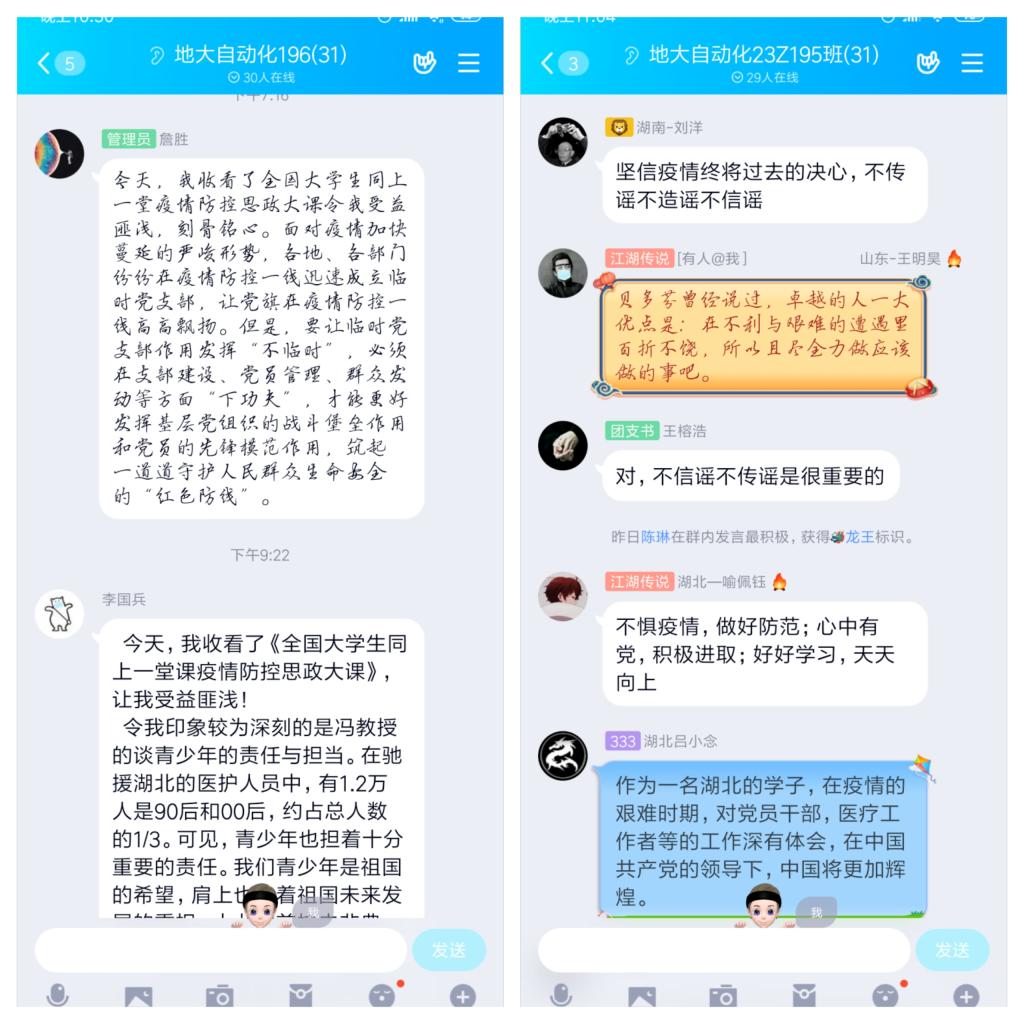 组织全体学生和思政老师于3月9日下午在线观看了“全国大学生同上一堂疫情防控思政大课”。这场特殊的思政直播课在学院师生中引发了热烈反响和讨论,以下是部分师生代表发自内心的感受和认识。