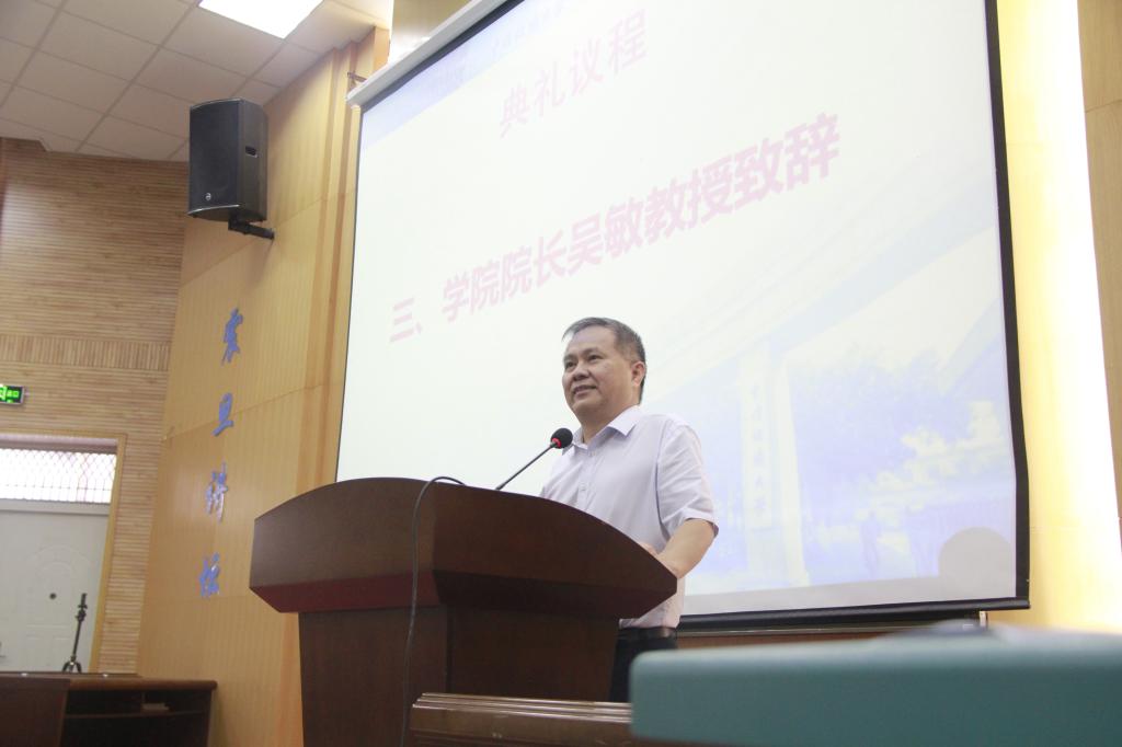 典礼在严肃庄严的国歌声中拉开帷幕。首先,院长吴敏教授代表学院向2020级本科和研究生表示热烈欢迎,并对学院的学术环境与师资力量进行简单概述。他说,91探花