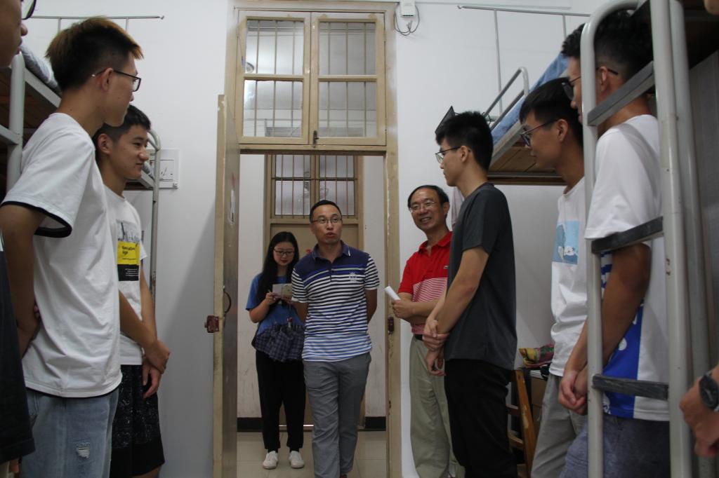 迎新工作将近尾声,院党委书记董浩斌、副院长曹卫华、副院长熊永华、副院长宗小峰、党委副书记何建新等学院领导和老师们分为四组走访了2019级本科生和研究生宿舍。