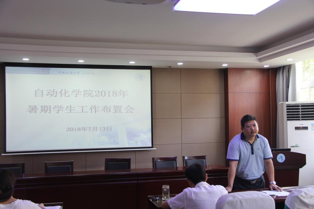 2018年暑期学生工作布置会在信息楼310报告厅召开。党委副书记何建新,团委书记谭文伦,辅导员许彦、刘一荻出席会议,许彦老师主持会议。
